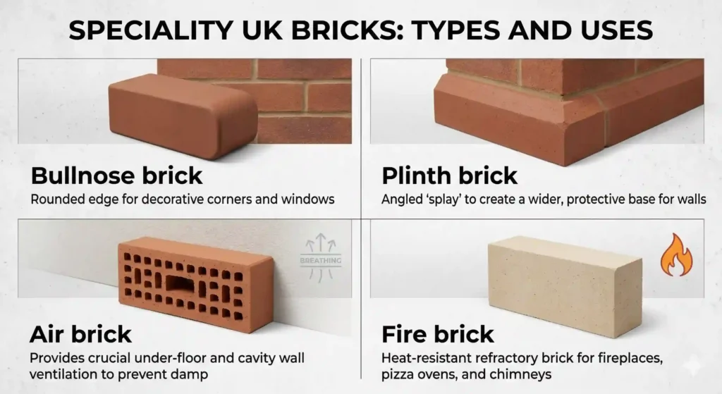 Engineering Bricks | ❌ No (Usually) | ✅ Yes (Extreme) | ✅ Yes | Damp proof courses (DPC)and sewers |